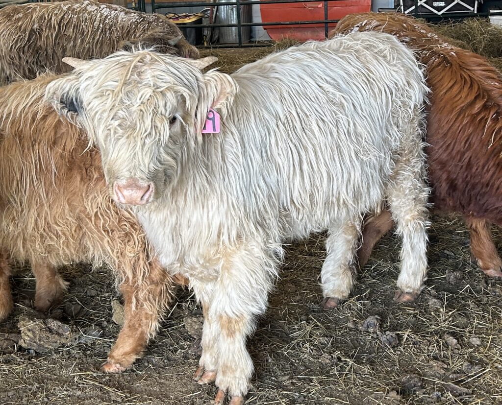 Neon Moon is a mild mannered heifer that is well on her way to being a stunning cow. She has a good developing coat coming along and has has some experience being handled and brushed. She is registered with the CHCS and is eligible for transfer to the AHCA. Negative for Myostatin NT821 by parentage.
