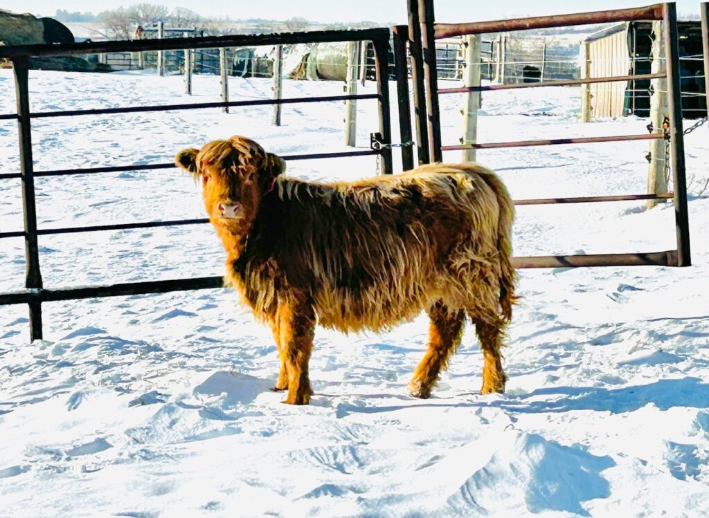 Nastalgia is a smaller framed heifer that is definitely going to make a correct but smaller framed cow. All of the calves we have had from this female have turned into remarkable females. The photos make her look red, but she is quite yellow/light red. She is a little shy at the moment but will warm up quickly once she is introduced into her forever home and is handled some. She is registered with the CHCS and is eligible for transfer to the AHCA. Negative by parentage for Myostatin NT821.