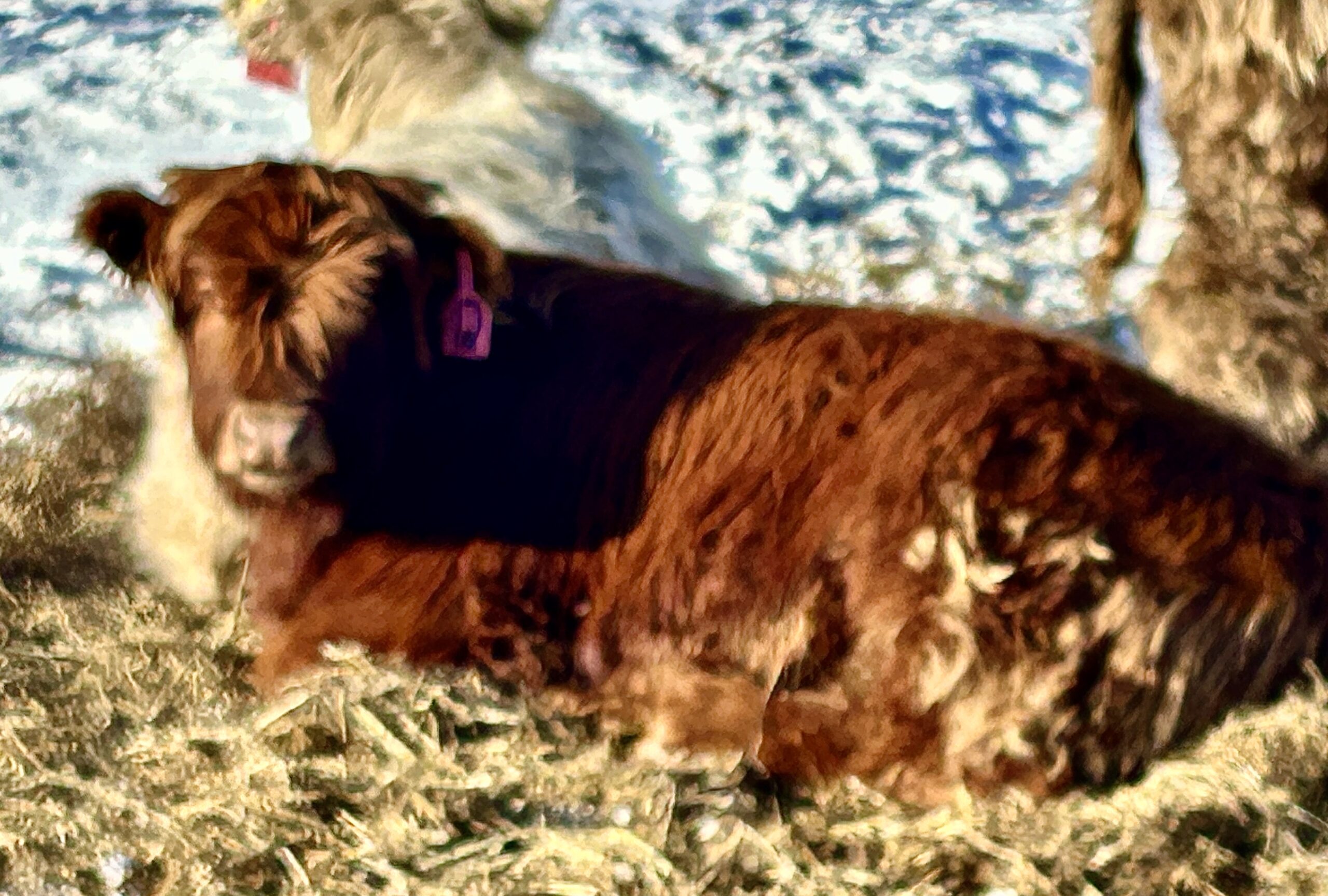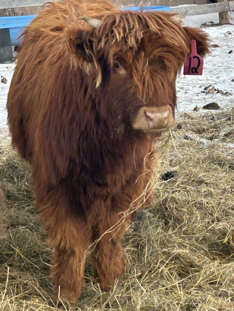 Nightingale is a friendly heifer that is going to turn into a jewel of a cow that exemplifies the Scottish look. She has a good developing coat coming along, solid feet, deep body and correct legs. She is registered with the CHCS and is eligible for transfer to the AHCA. Negative for Myostatin NT821 by parentage. Nightingale has been started under halter and is very eager to learn.